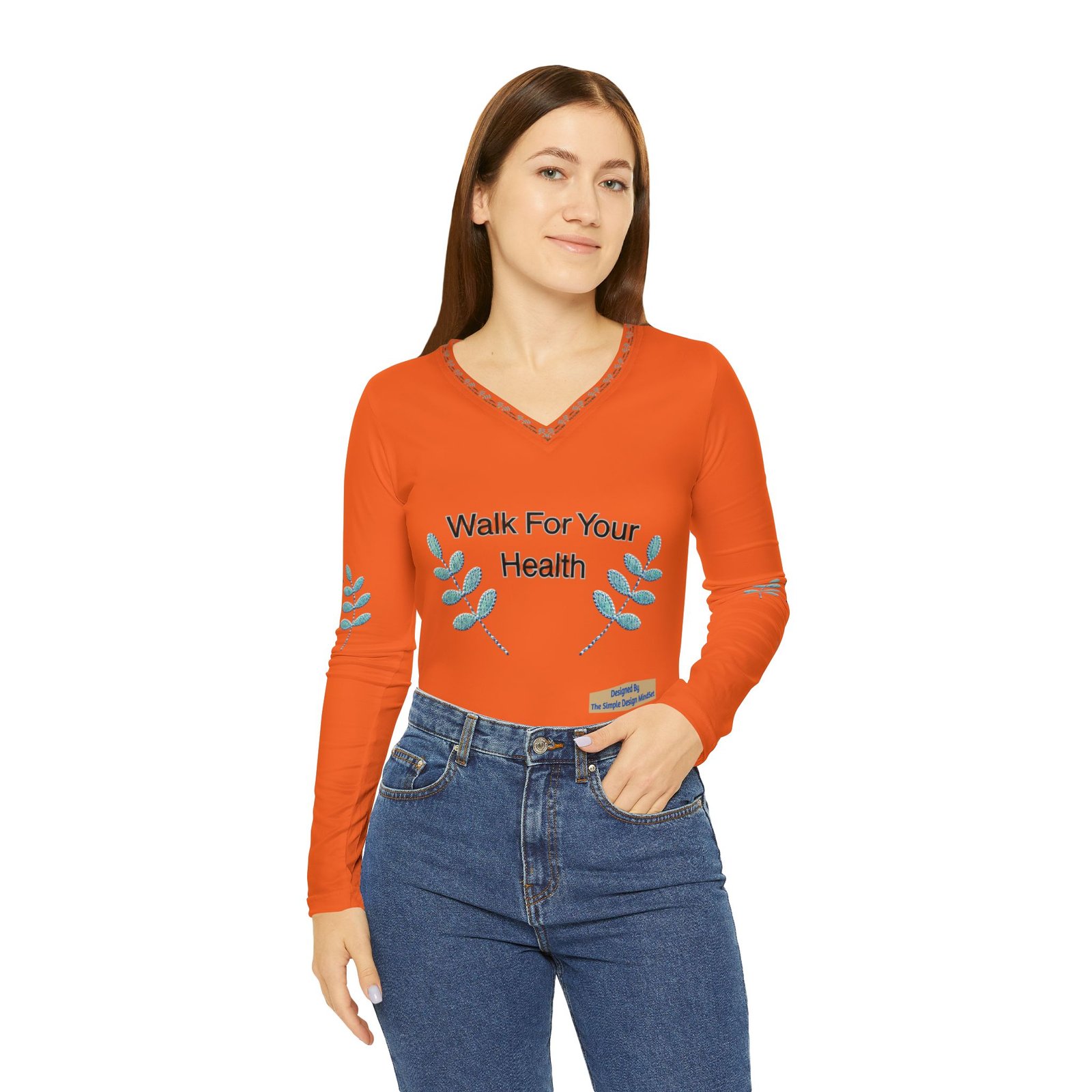 Be the first to review “Walk For Your Health Long Sleeve V-Neck Orange Shirt”